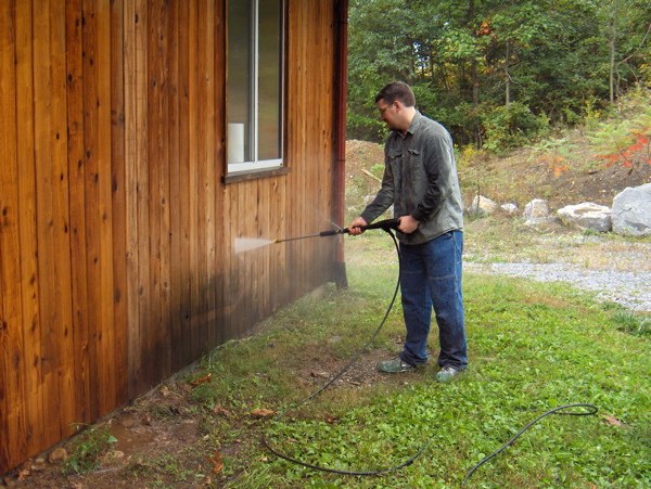Powerwashing The House In Preparation For Staining