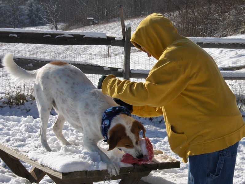 Pepper and Wyatt playing with us in the yard, and Pepper sleeping